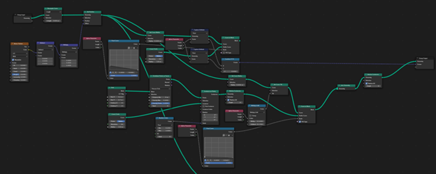 While the standard hand modeling worked extremely well for most objects, some objects had better effects using blender geometry nodes (geonodes) workflow.