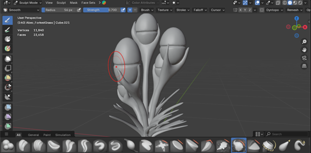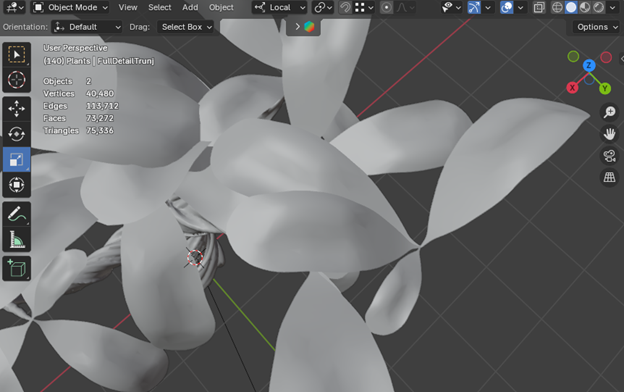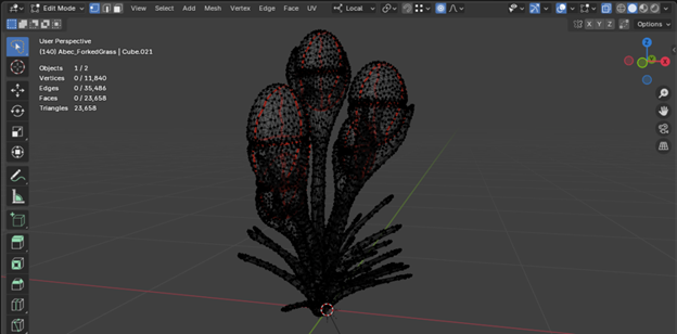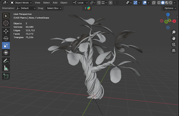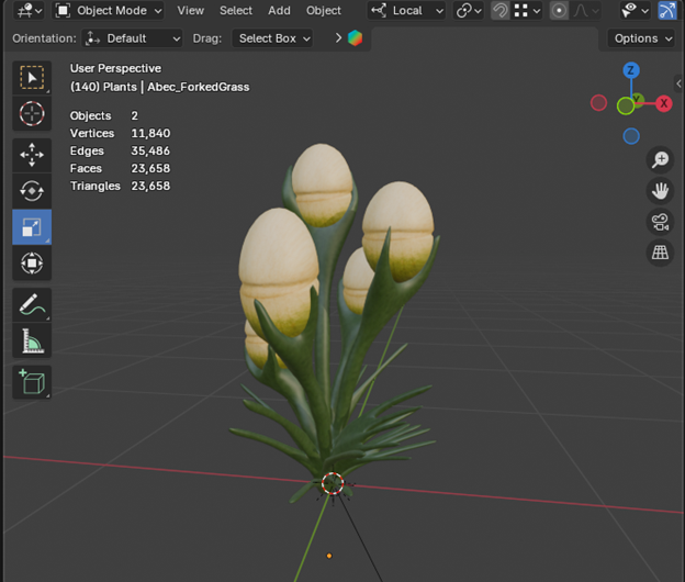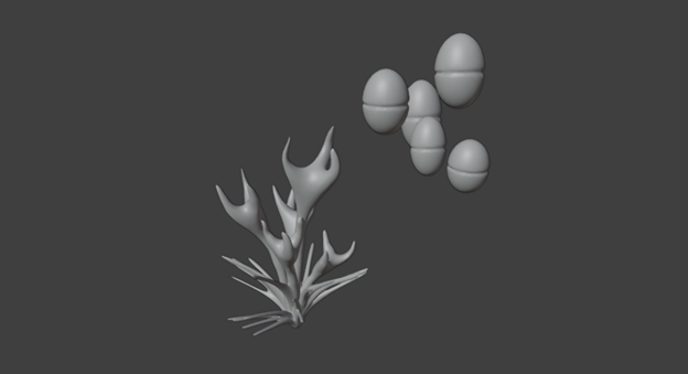 In particular most small plants were created using standard modeling practices, sculpting and moving vertices in edit mode.