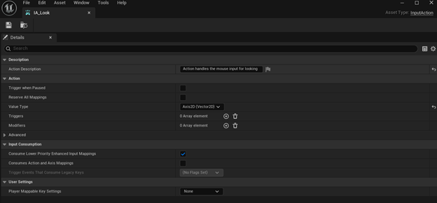 After creating all the inputs, using an input mapping context (IMC), which takes the inputs just created and maps them to keyboard or mouse triggers