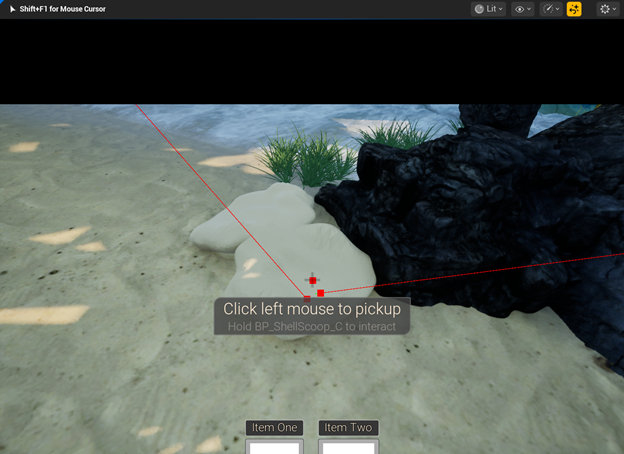 The red lines are the line traces coming from the player view hitting an interactable object.